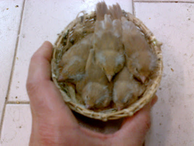 NASCERAM-ME BASTANTES FILHOTES NESTES DOIS DIAS,CONTANDO COM OS ANILHADOS,JÁ ULTRAPASSEI OS 400 CANÁRIOS NASCIDOS,VAMOS VER SE O VENTO CONTINUA DE FEIÇÃO POR MAIS ALGUM TEMPO.